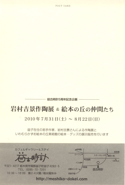 益古時計5周年記念企画「岩村吉景作陶展&絵本の丘の仲間たち」