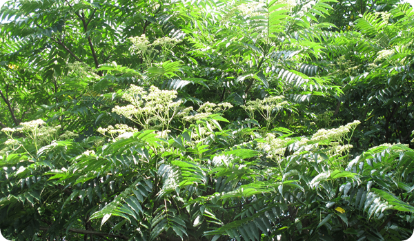 雑木林では、カラスザンショウの花が満開になっています。