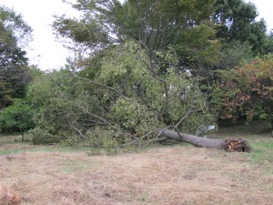 台風でたおれてしまった草っ原にあったクヌギの木。
