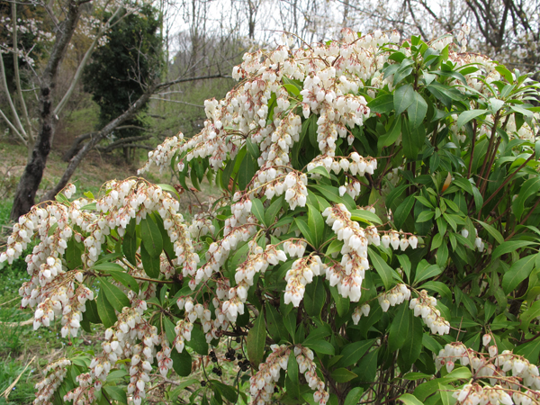 アセビの花には昆虫以外にもメジロなどの鳥たちもやってきます。