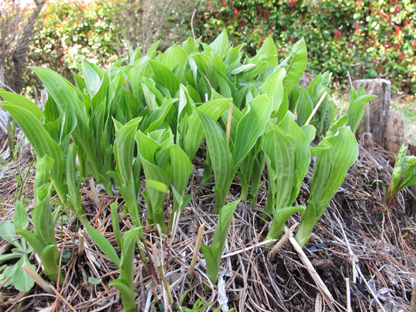 株によって芽の出る時期がすこしづれますが、中庭のあちこちで芽が動きはじめています。
