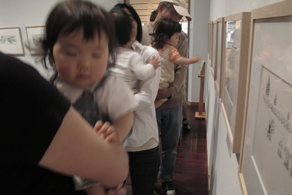 思い思いに目にとまった絵の前で立ち止まり、絵を指差したりじっとみつめたり