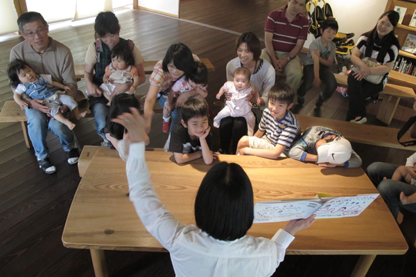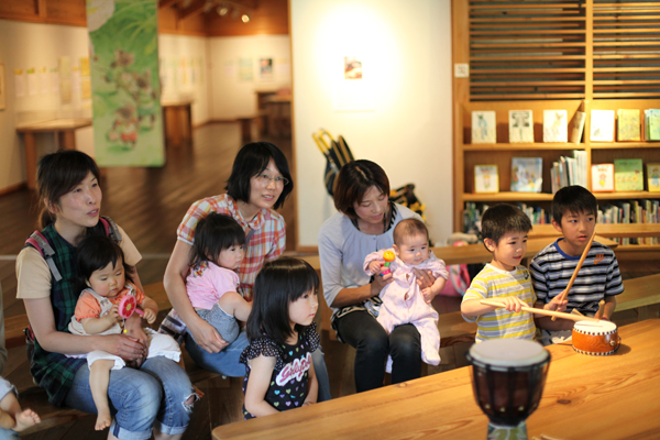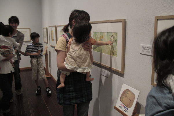 ひとしきり展示をみたあとは、ホールで長野麻子さんによる絵本のよみきかせと歌の時間です。
