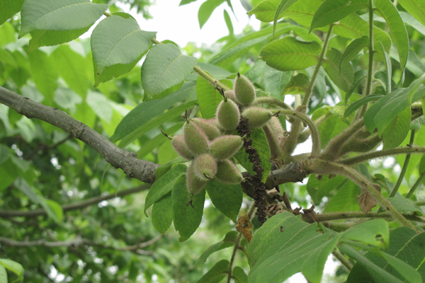 草原のクルミの木で、だいぶふくらんで来たクルミの実をさわってみたり、