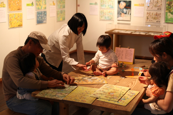 絵を見たあとは、とんがりぼうしゲームとパズルがおいてあるテーブルでひとやすみ。