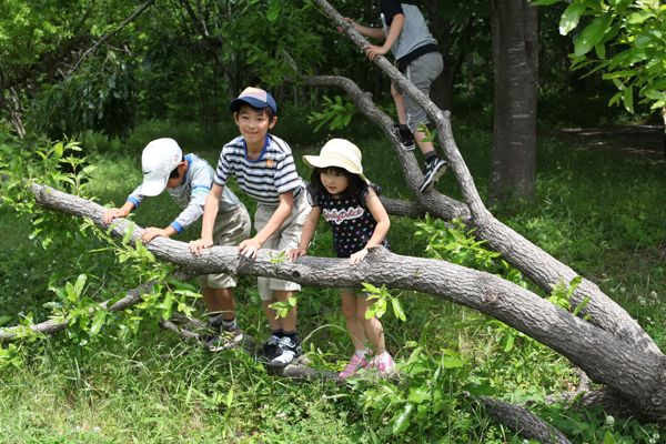 大きい子たちは、木に登って遊びます。
