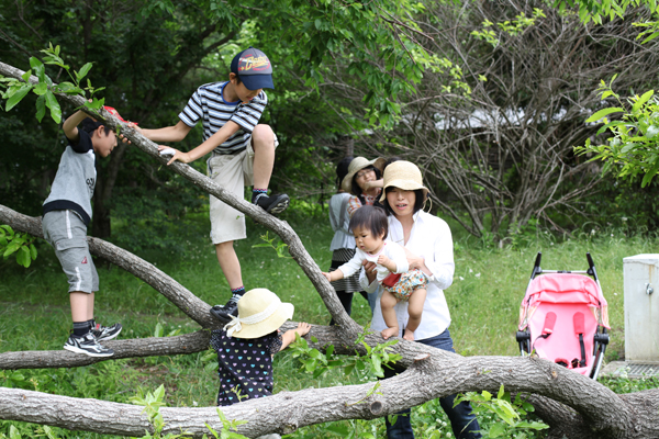 あかちゃんも木の上にのってみました。