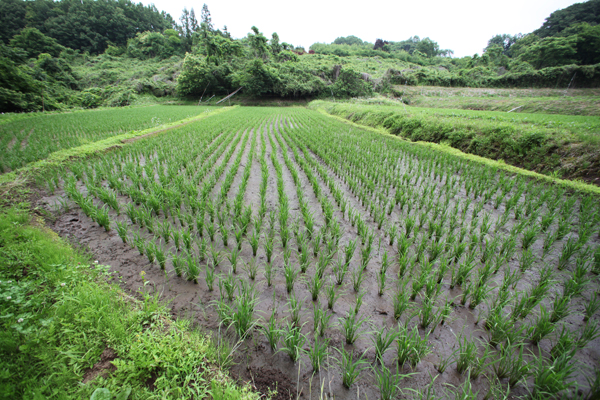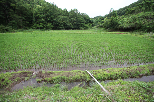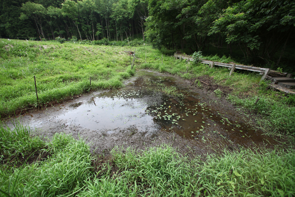 えほんの丘農場から流れてくる沢の水も枯れてしまい、田んぼに流れ込んでくる水はありません。