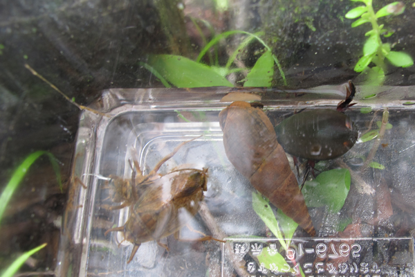 そのほかにも、コオイムシ、クロゲンゴロウ、シマゲンゴロウ、タイコウチ、いろいろな種類のヤゴ、アマガエルなどが見つかりました。