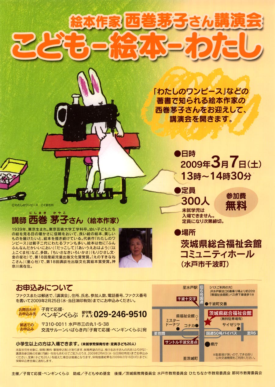 2007年に当館で展覧会を開催した『西巻茅子』さんの講演会が、水戸市で開催されます。