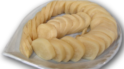干しあがったダイコンは、外側が乾いて中側が水分が多い状態になっています。